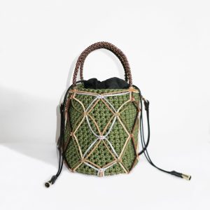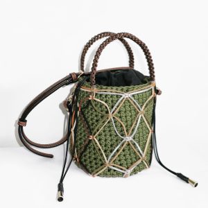 Equilibrio, materia e stile si fondono nella Bucket Loemya Bosco, una borsa che racchiude lโanima autentica del fatto a mano.