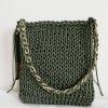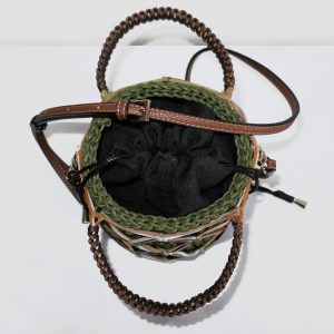Realizzata artigianalmente in Italia, combina un intreccio in corda verde oliva dal carattere naturale con una raffinata rete in cuoio multitone, ispirata ai nodi marinari.