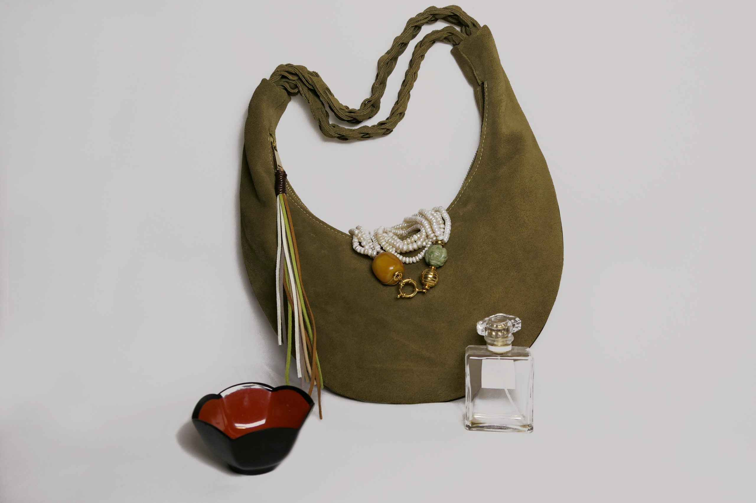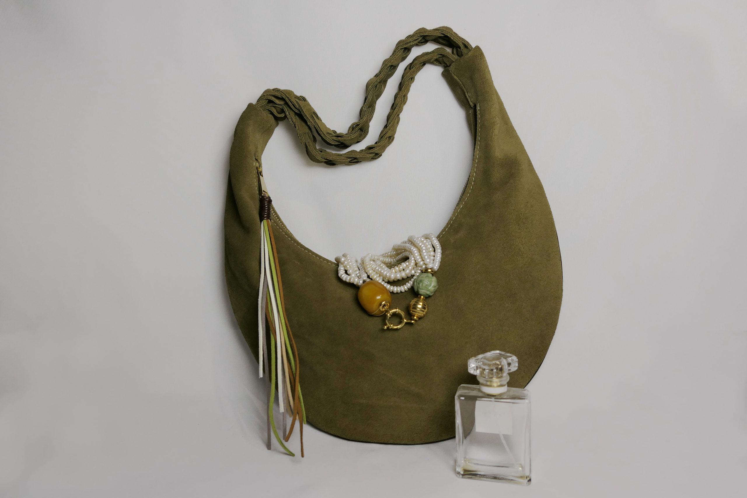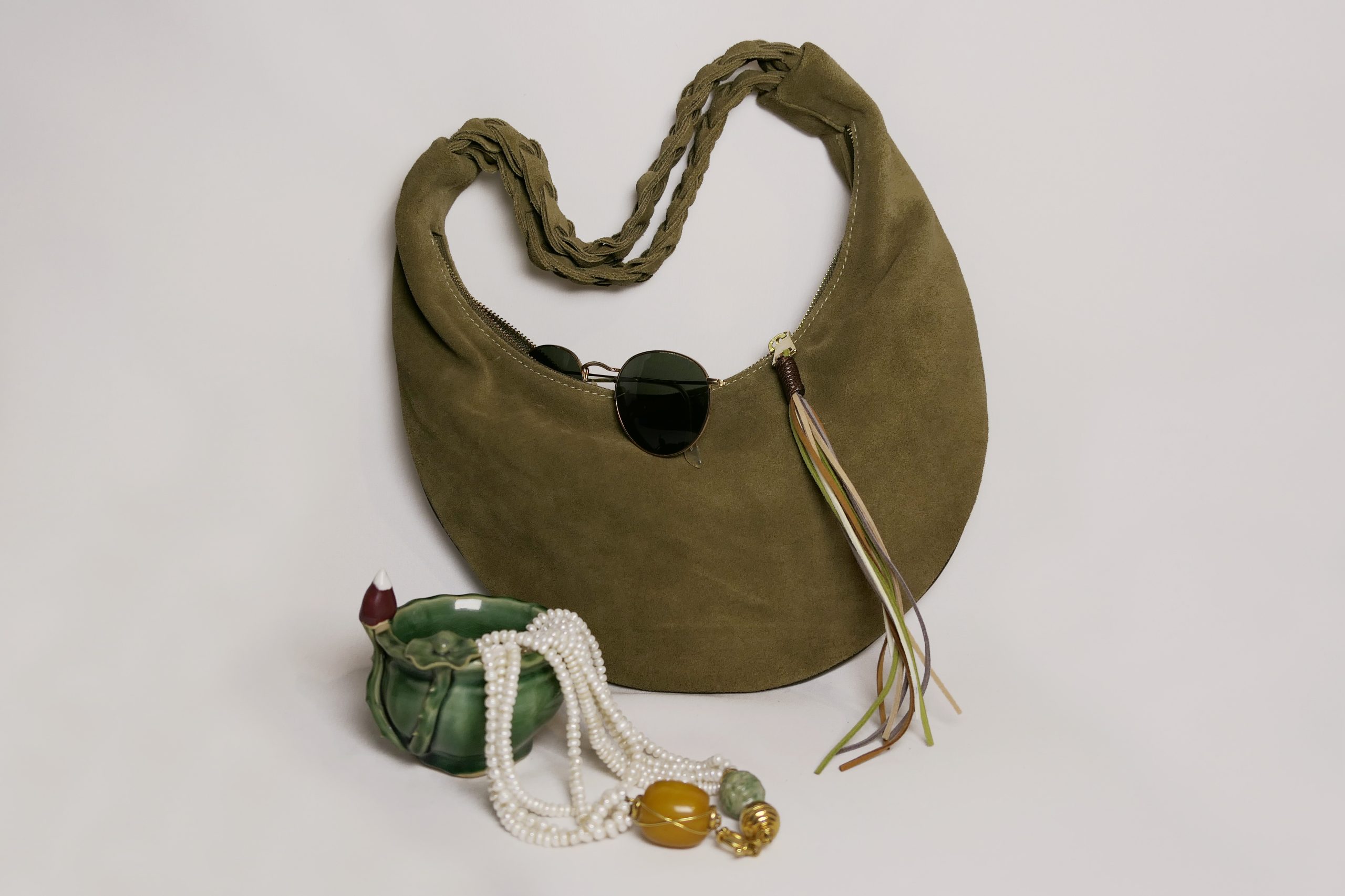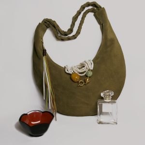 La bag Hobo di Loemya è una borsa artigianale dal design essenziale e raffinato, pensata per chi cerca eleganza e praticità in un unico accessorio. Realizzata in morbida pelle scamosciata, si distingue per la sua forma a mezzaluna e il manico intrecciato a mano e per i dettagli in frange laterali che aggiungono un tocco boho-chic, rendendola una borsa versatile e sofisticata, che aggiunge un tocco di originalità e carattere. La bag diventa ancora più funzionale grazie al portamonete coordinato acquistabile separatamente.