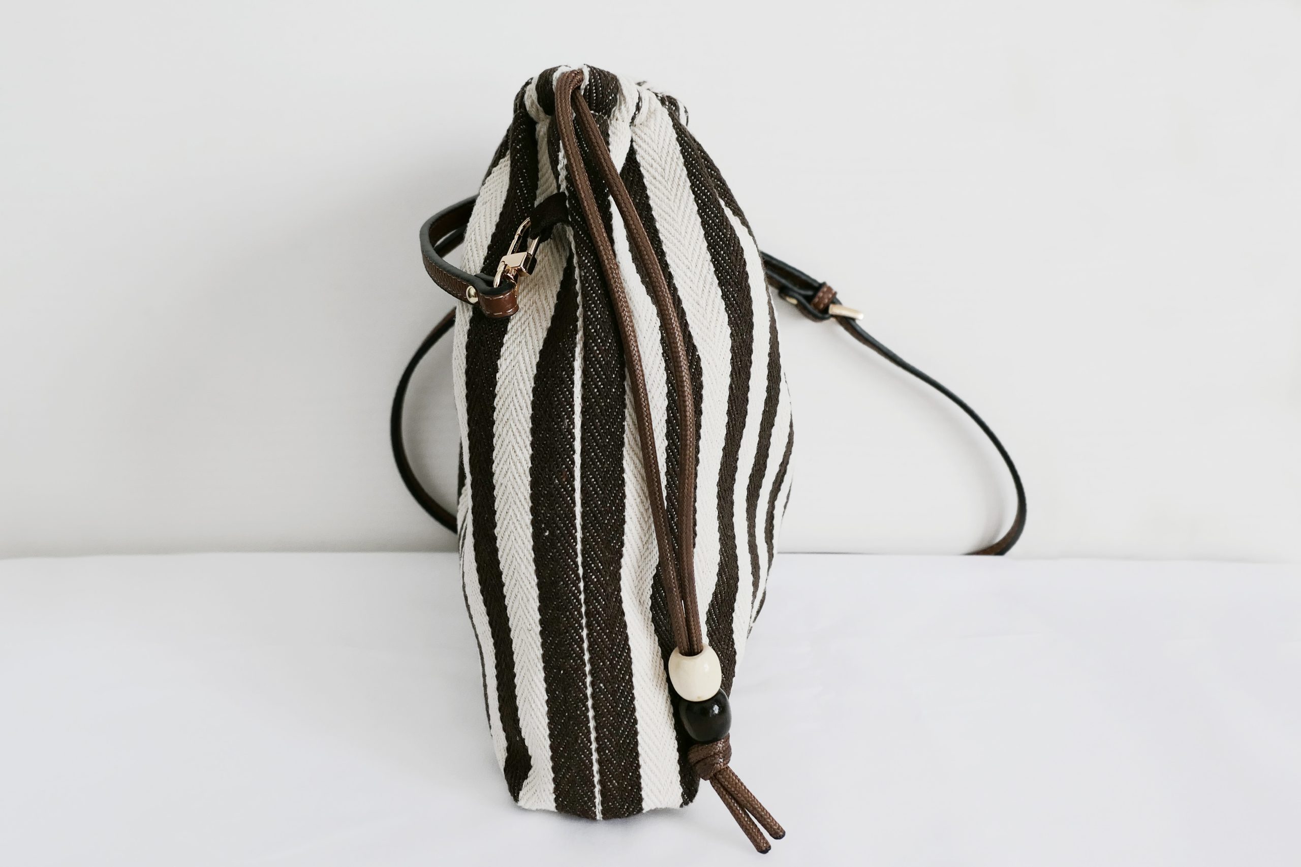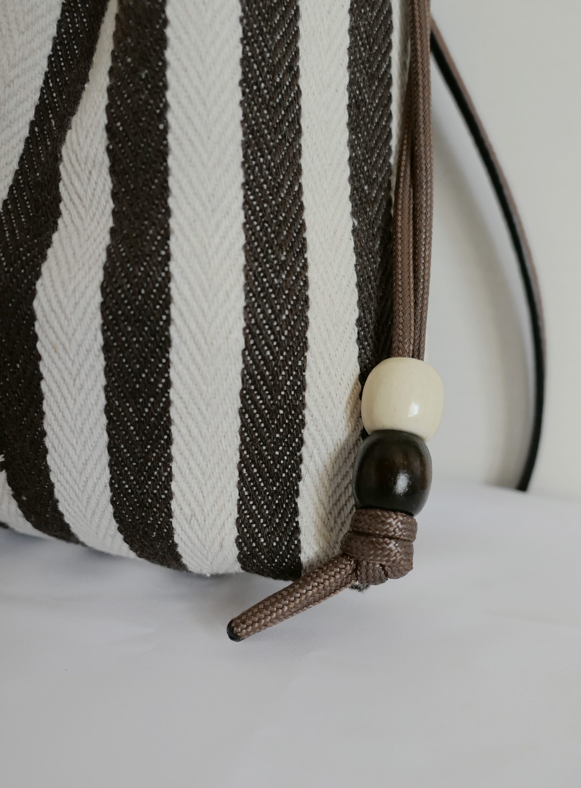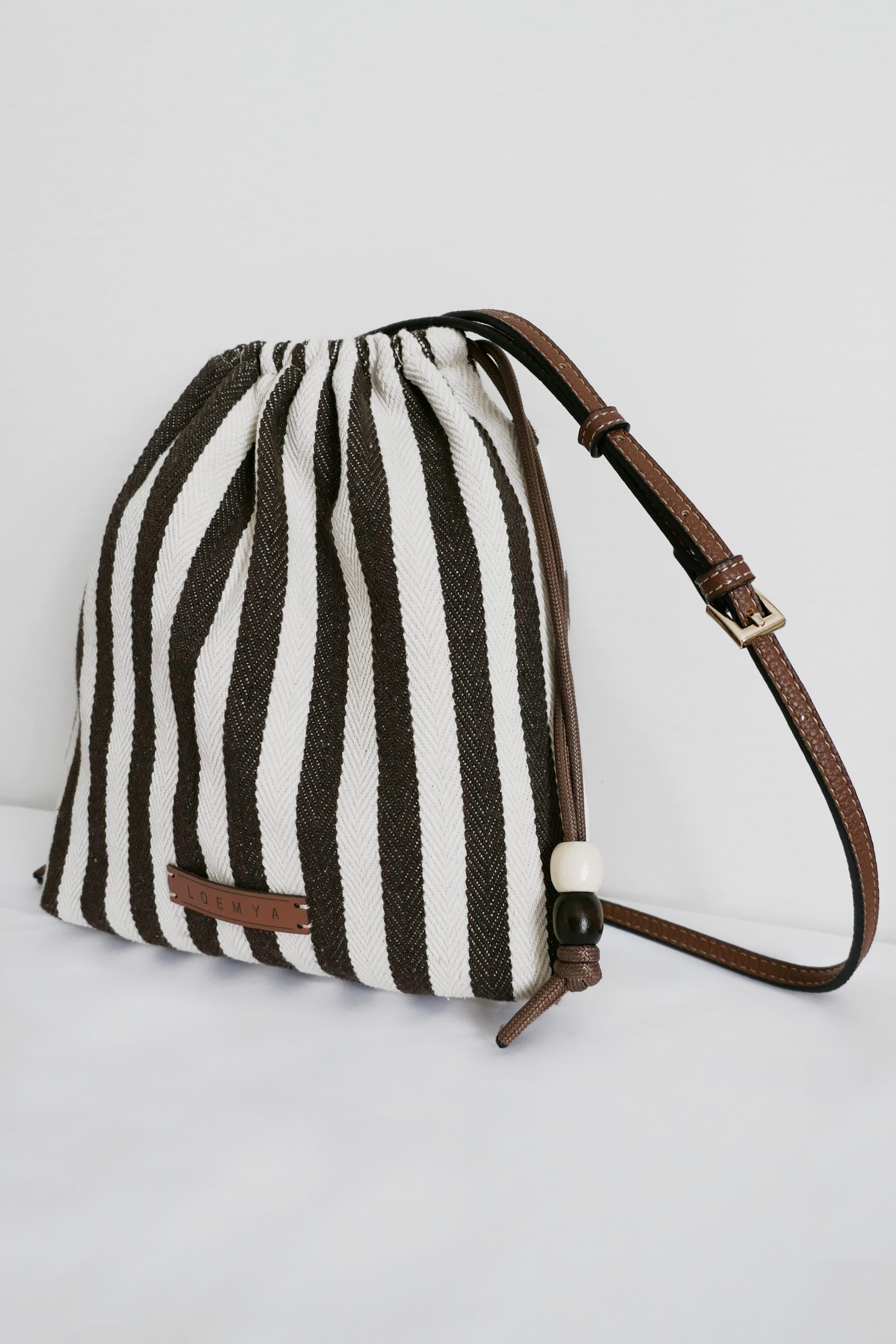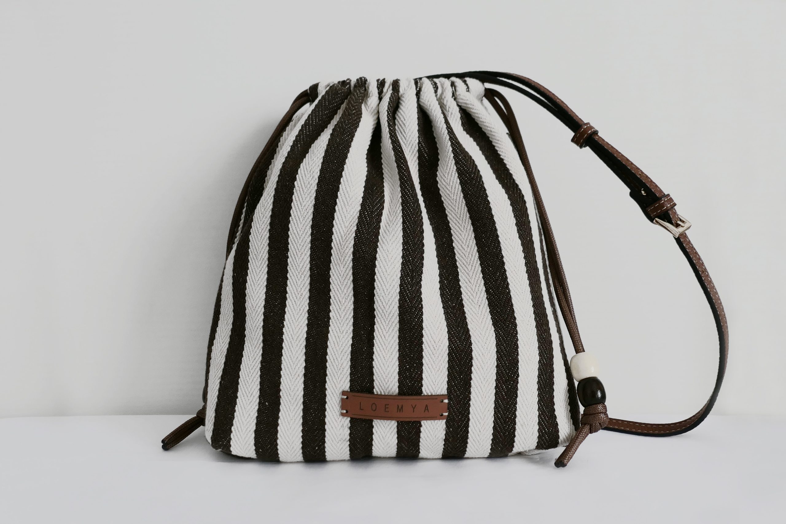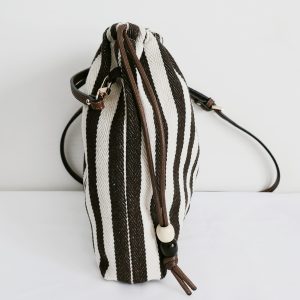 La borsa Stripes di Loemya unisce stile naturale e design contemporaneo ed à caratterizzata da un elegante motivo a righe bianche e marroni che dona personalità e raffinatezza a ogni look.